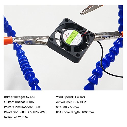 - [Fans and Magnifier]: USB fans is used to blow away smoke and dust; while magnifier is used to see soldering piece more clearly.