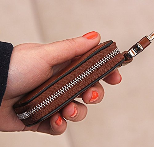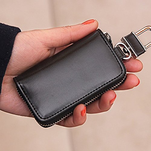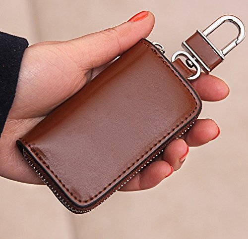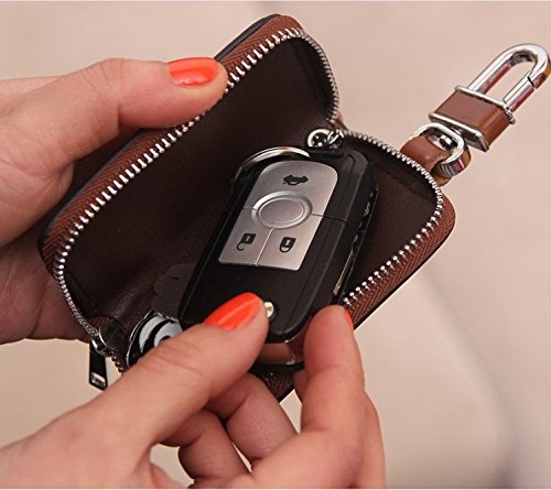Adopted premium real leather, features soft and wear-resistant, durable for use Designed for most car keys; Zip around closure with only 1 car key chain,protect your car key and car door remote against damages, dust and scratches; Also great for holding some coins