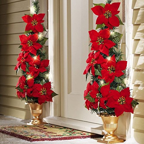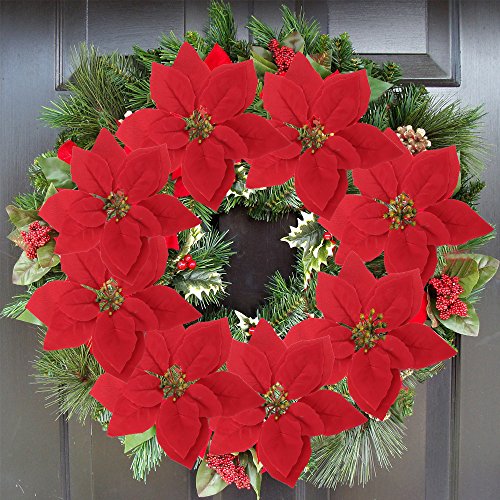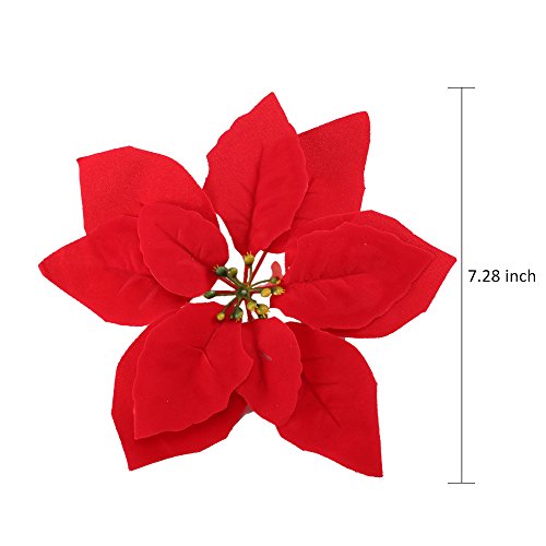Artificial poinsettia flower heads will be the beautiful addition for your Christmas tree, Christmas front door wreath, cedar hanging vine and table centerpiece arrangements decor