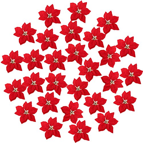 GTIDEA 28PCS Artificial Poinsettia Silk Floral Heads Christmas Tree Decorations Xmas Home Front Door Wreath Table Centerpieces Arrangements Fake Hanging Vine Swag Decorative