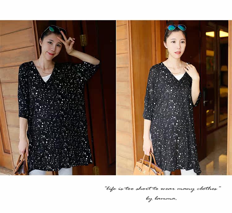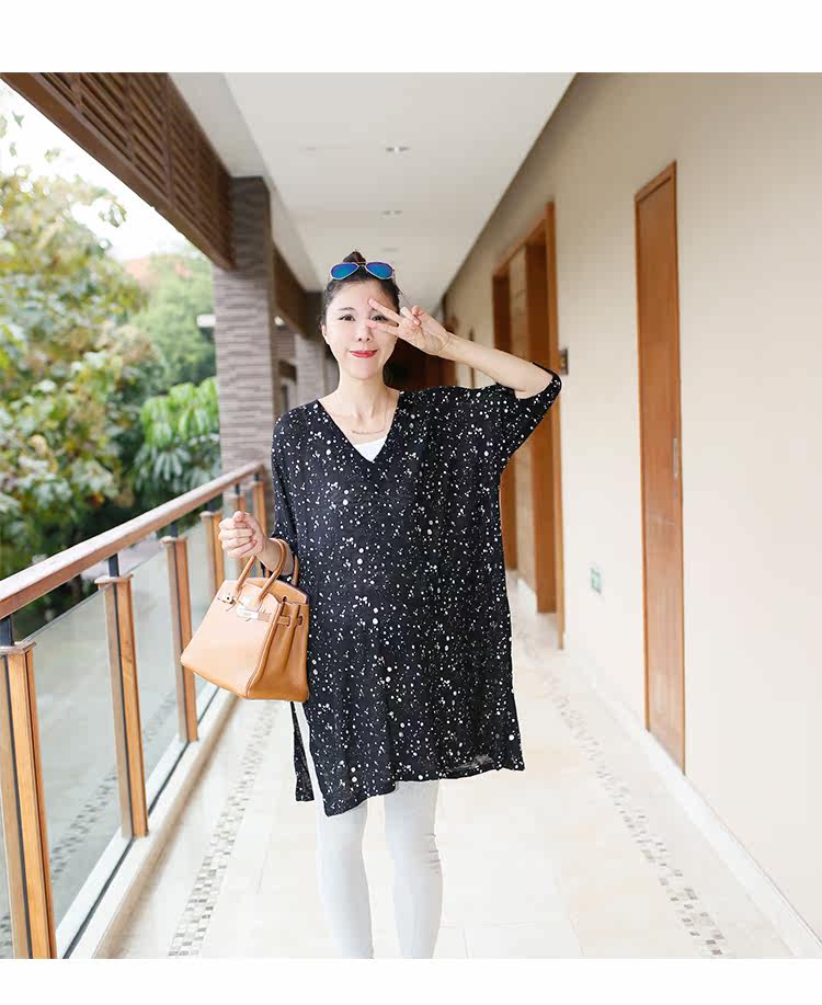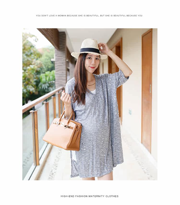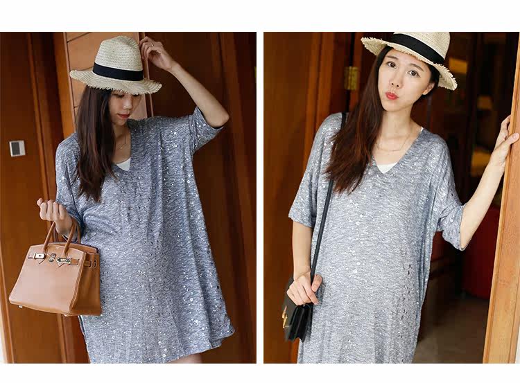时尚孕妇装宽松V领上衣套头亮片气质罩衫裙针织薄款