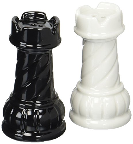 CG SS-CG-56702 Black & White Ceramic Chess Rooks Salt & Pepper Shakers, 2.75"