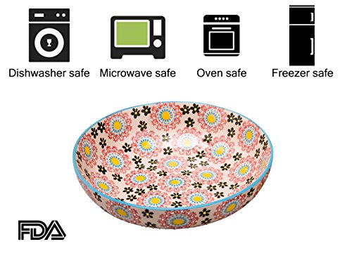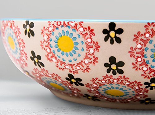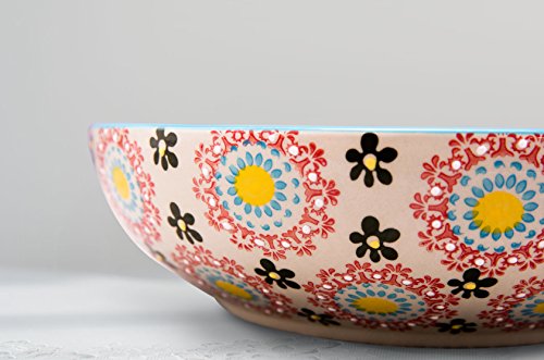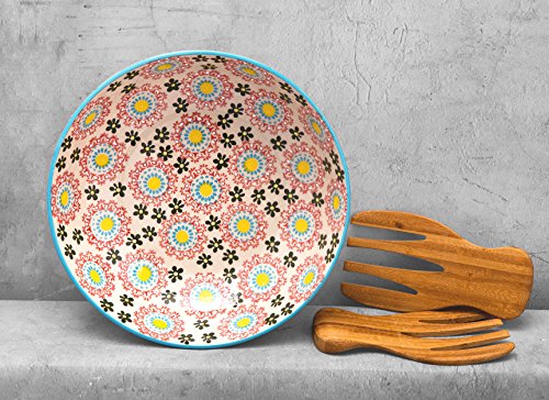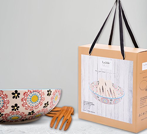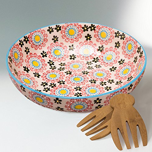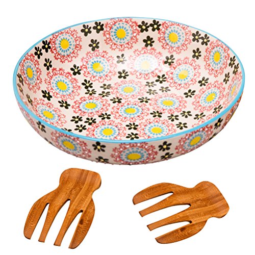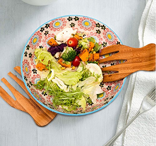 Stoneware Salad Bowl Set with Salad Hands, Large Serving Platter, Vintage Embossed Hand Painting
