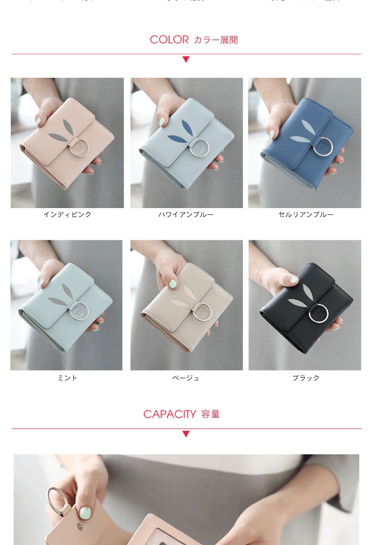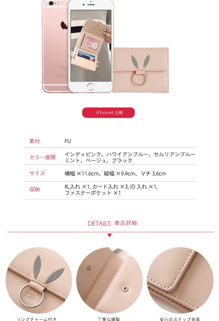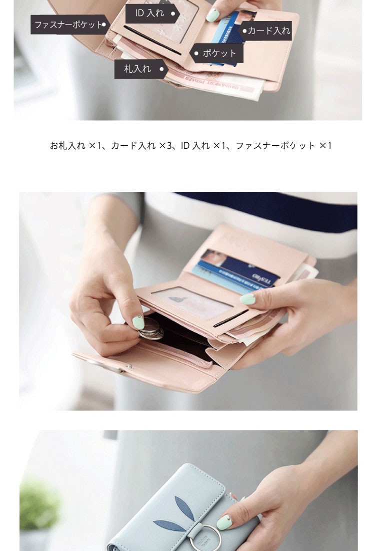| 開閉 | お札入れ×1、カード入れ×3、ID入れ×1、ファスナーポケット×1 |