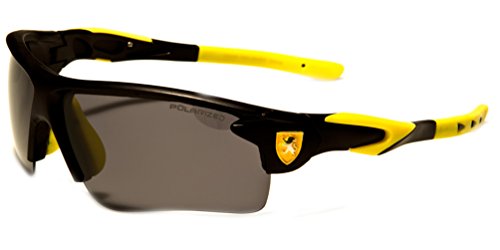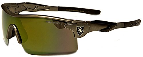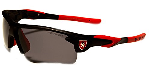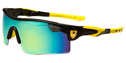 These wrap around polarized lenses and frames give you almost 360 degrees of eye protection. Polarized lenses are the best for activities on or near the water, as they effectively cut the glare and block harmful UV rays. Sturdy plastic semi-rimless frames extend into highly textured and angular arms. Straight earpieces contain three triangular color accents. The combinations of lens and frames colors allows you to show off your style and taste. Handy Premium Hillcrusher Microfiber Sunglasses Protector Included.