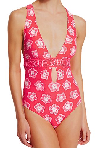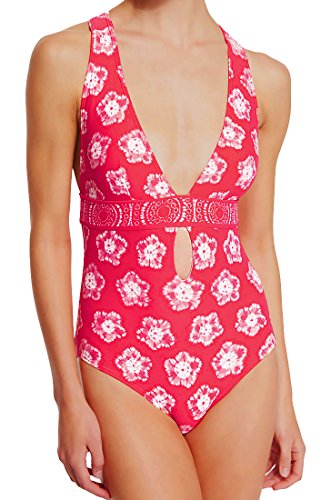 Product DescriptionMichael Kors Kanoko Plunge Center Cross Back One Piece Swimsuit 14, Coral0