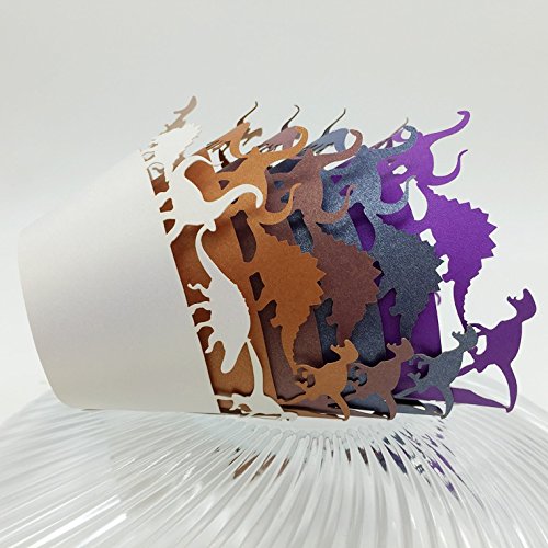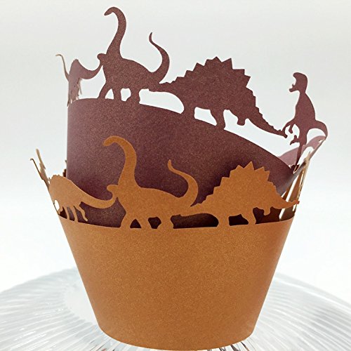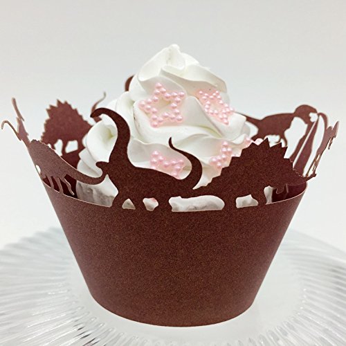 120 Pcs Laser Cut Dinosaur Cupcake Wrapper Liner Baking Cup Muffin Case Trays Wedding Birthday Party Decoration (Coffee)