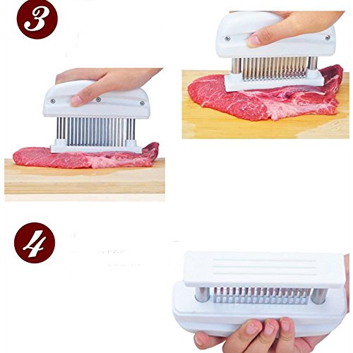 Product Description Specification Product Specifications: 48-pin Dimension: 150mm* 35mm * 110mm Material: ABS stainless steel Product Weight:300g Allows the sauce to penetrate quickly and reduces cooking time,Tenderize without altering, distorting or damaging the meat ensures without losing of their natural juices, making it tasty and juicy,suitable for home kitchen, hotel, restaurant and so on. Portable with a protective cover and Easy to store and Clean,Just soak in warm soapy water after a few minute and wash right off Please Note: Tips : The product is very sharp, so stay away from children. Clean and dry the water after use. Notice: 1.Please allow 1-3mm error due to manual measurement. 2.The color may have difference as the different display,pls understand. Pls make sure you do not mind before you bid.Thanks for your understanding! If you commodity have any questions, please contact me, thank you.