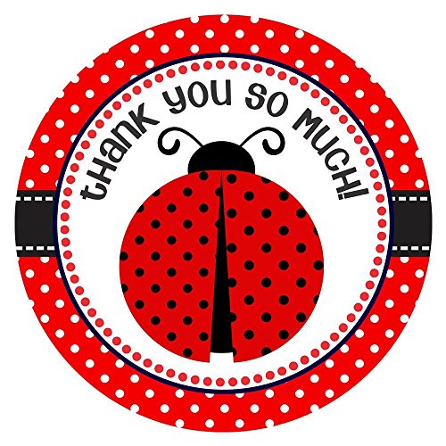 Ladybug Thank You Sticker Labels for Girl Birthday or Baby Shower Party Favor Labels - Set of 30