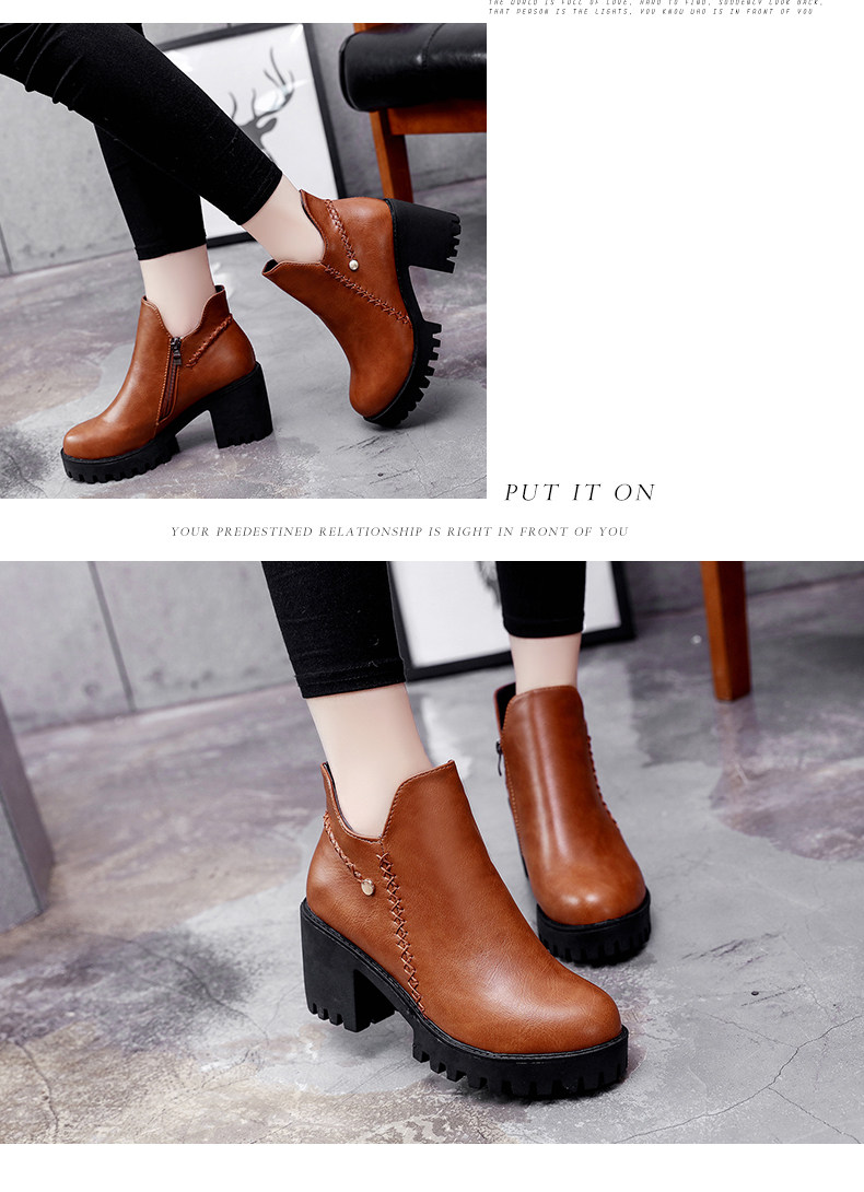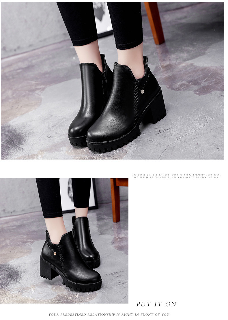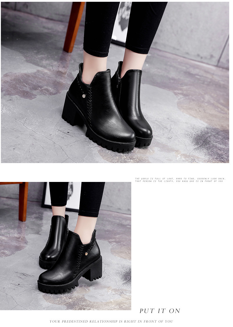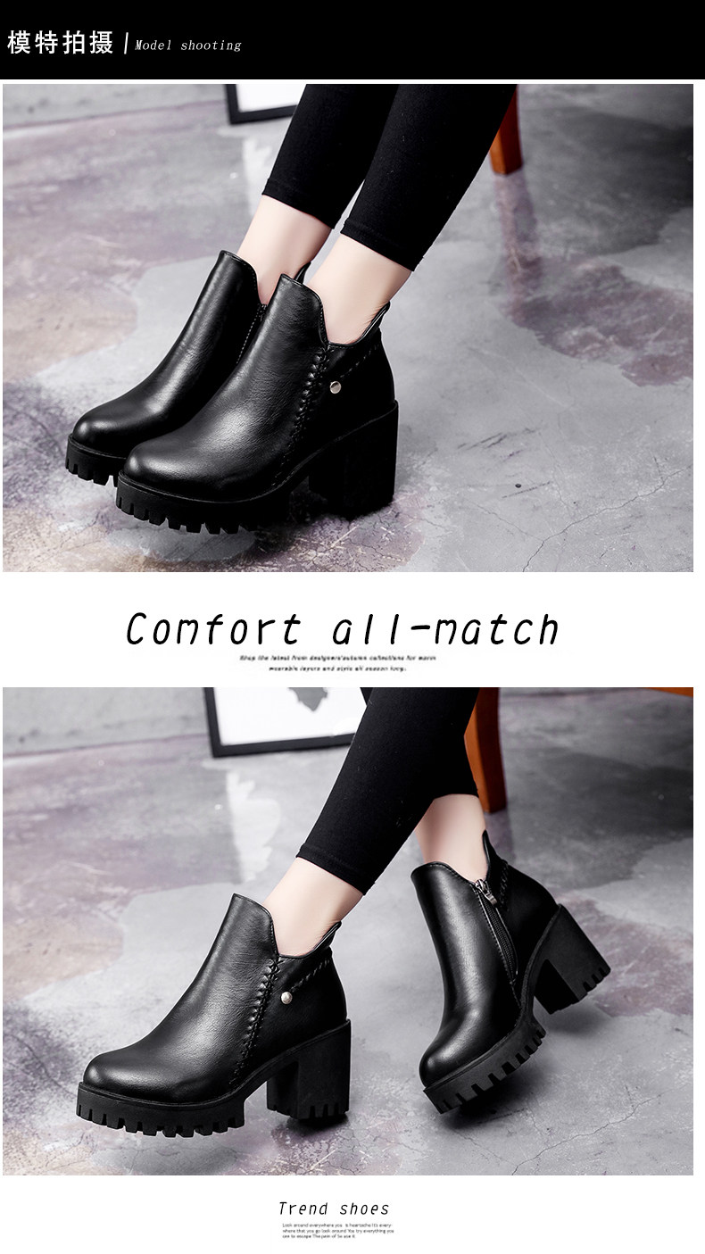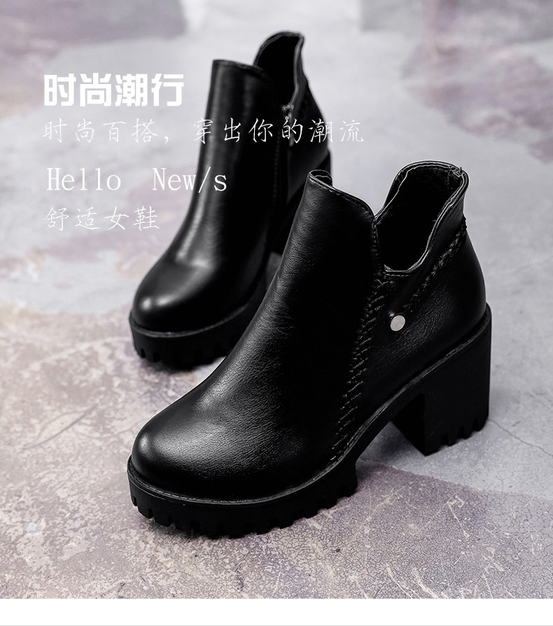 靴子女秋冬季新款百搭高跟短靴女粗跟裸靴及踝靴英伦风单靴子