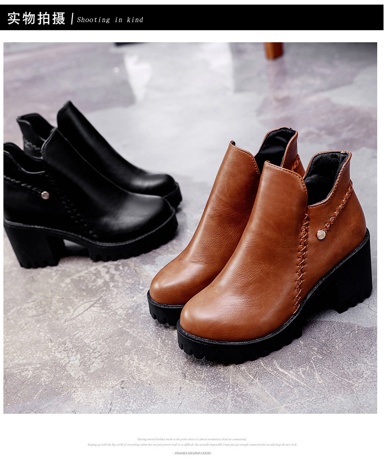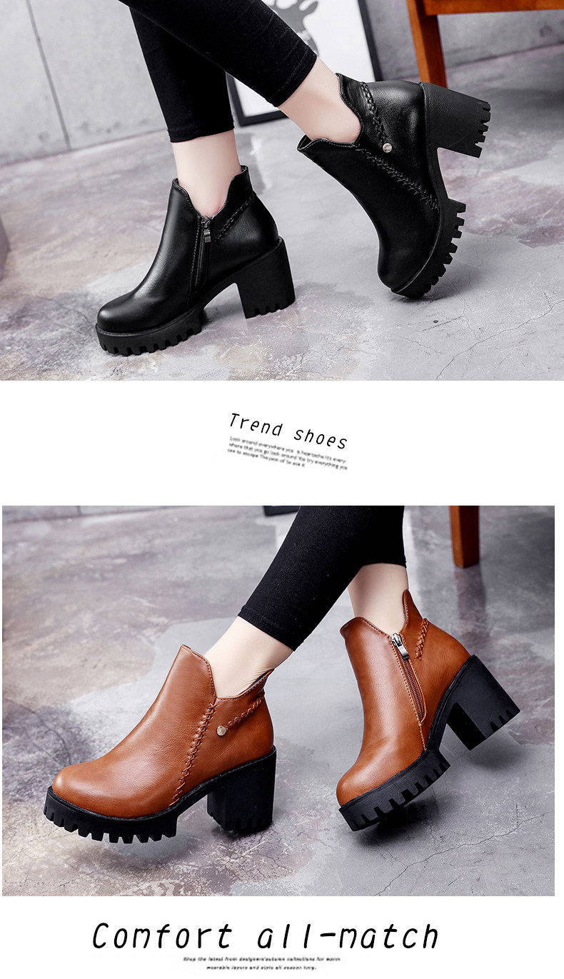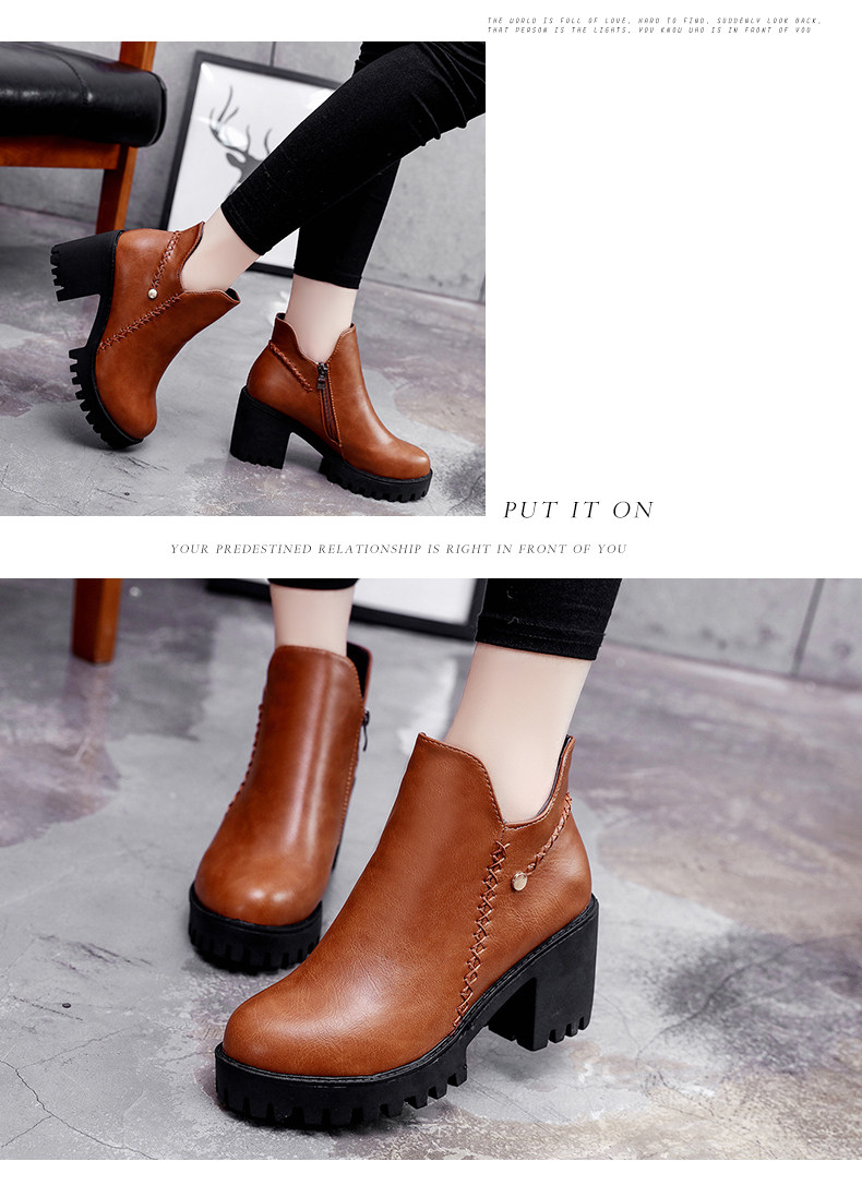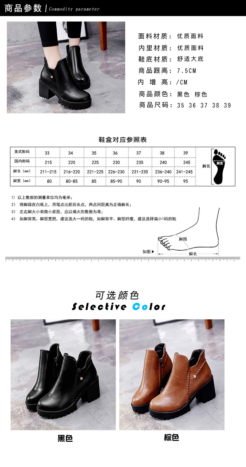 靴子女秋冬季新款百搭高跟短靴女粗跟裸靴及踝靴英伦风单靴子