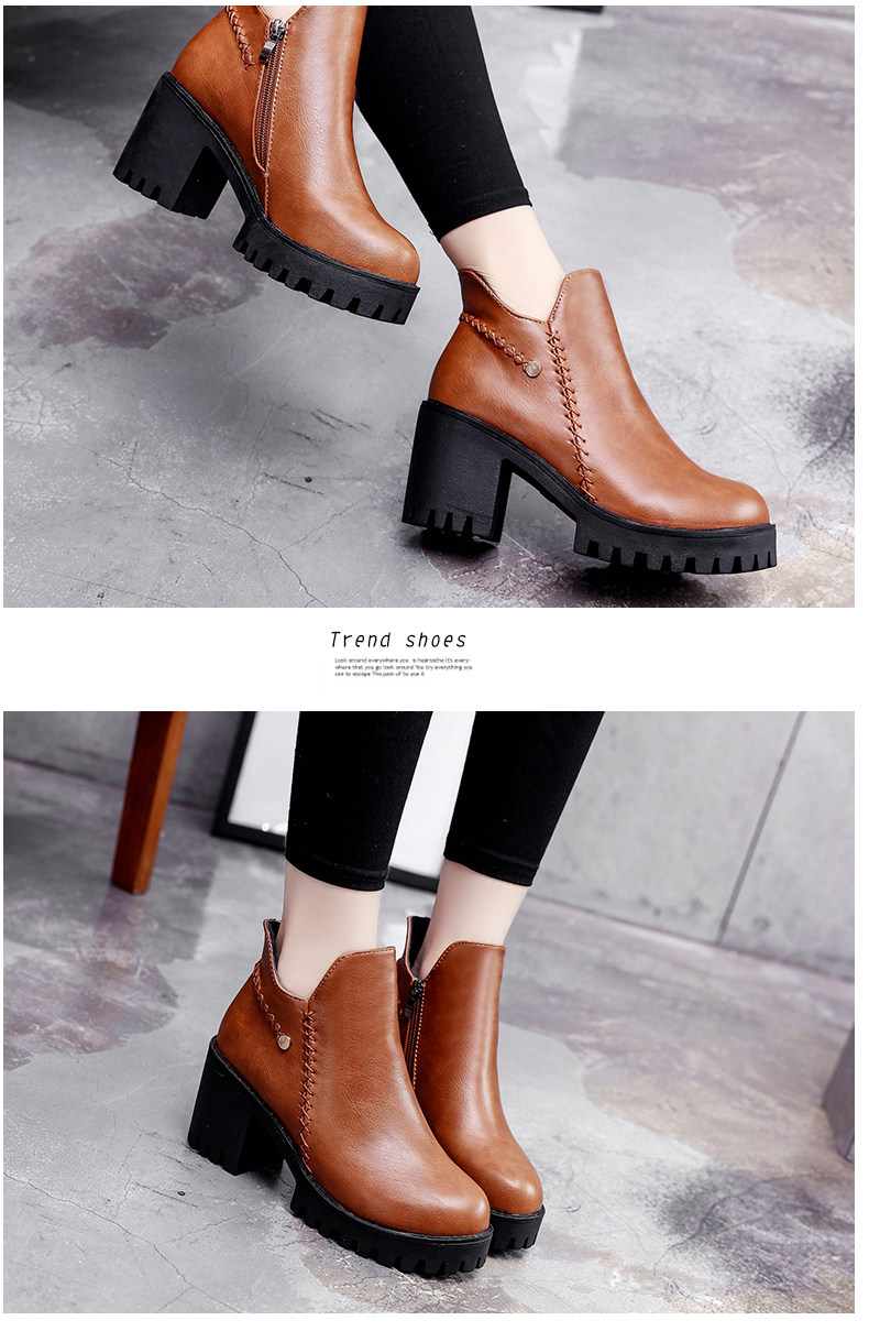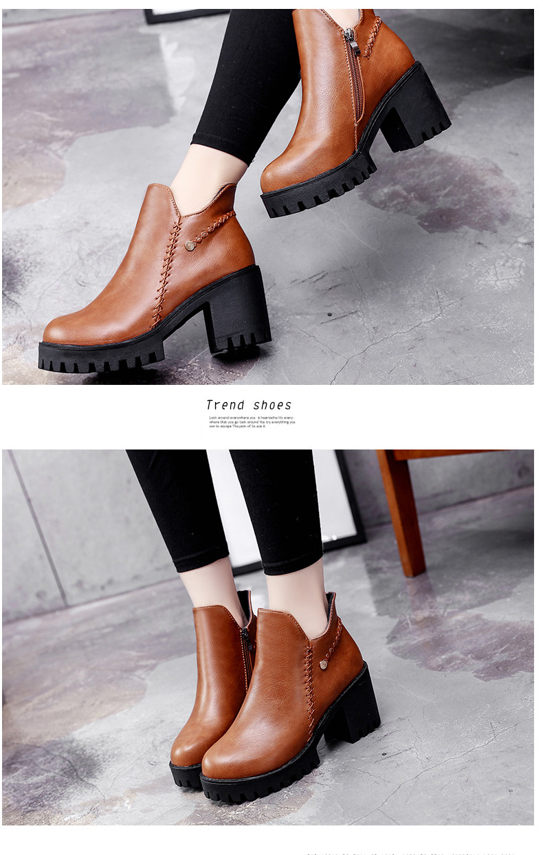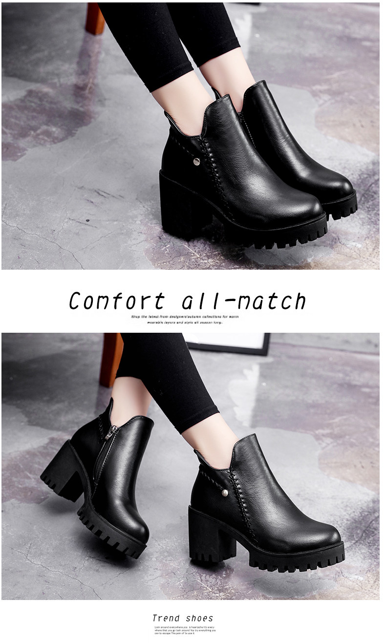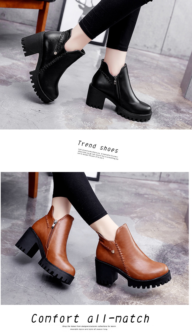 靴子女秋冬季新款百搭高跟短靴女粗跟裸靴及踝靴英伦风单靴子