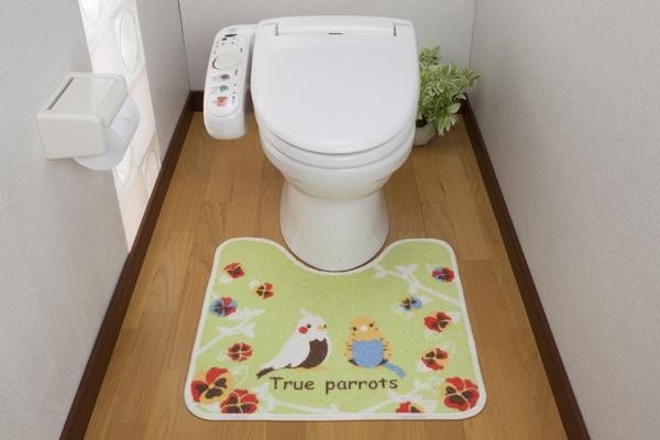 | 可愛らしい小鳥とエレガントなお花のデザインでトイレを明るく華やかな雰囲気に♪裏面に滑りにくい加工を施しているので、横ズレしにくいです!! |