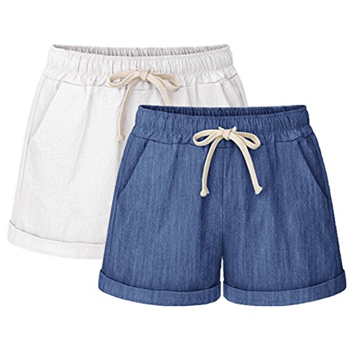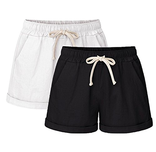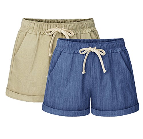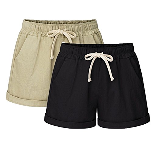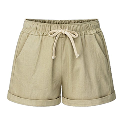 -. Title : Vcansion Women's Drawstring Elastic Waist Shorts Cotton Linen Plus Size Beach Shorts