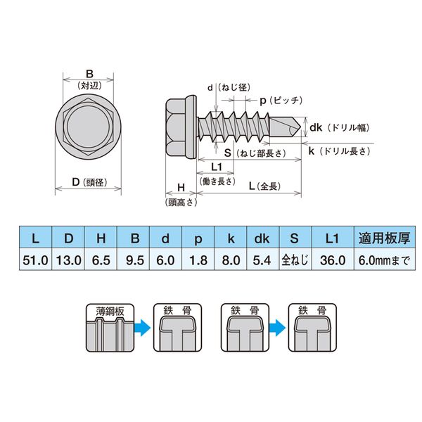 ●薄鋼板+鉄骨用ドリルビス 鉄骨+鉄骨用ドリルビス