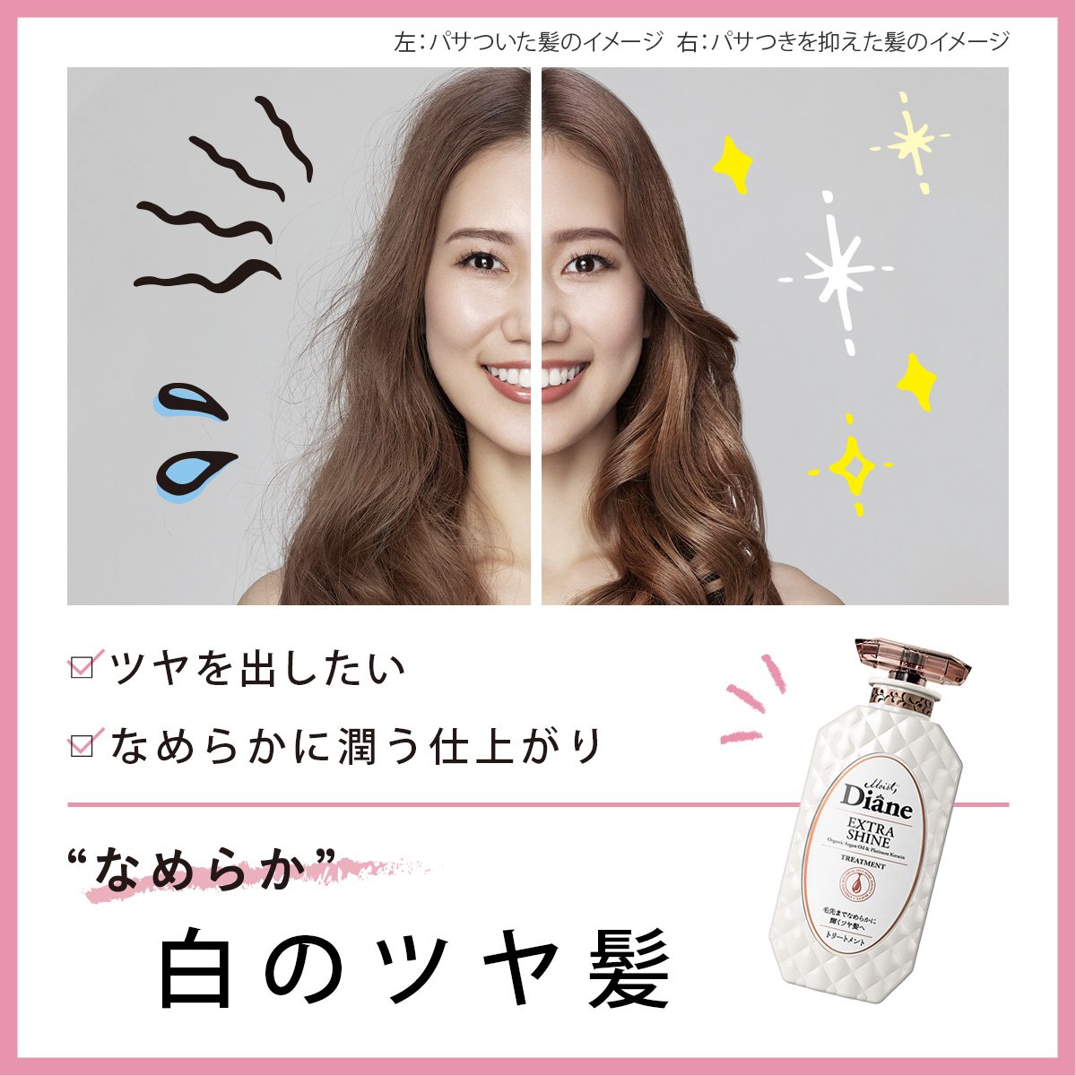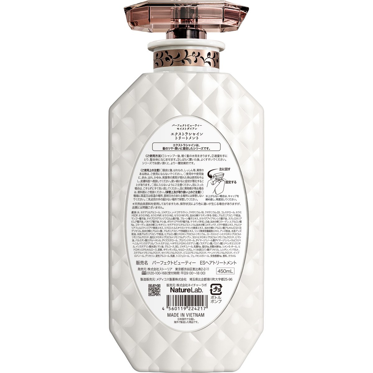 "Platinum keratin (* 2)" leads to glittering shiny hair like platinum with superb moisture repair.