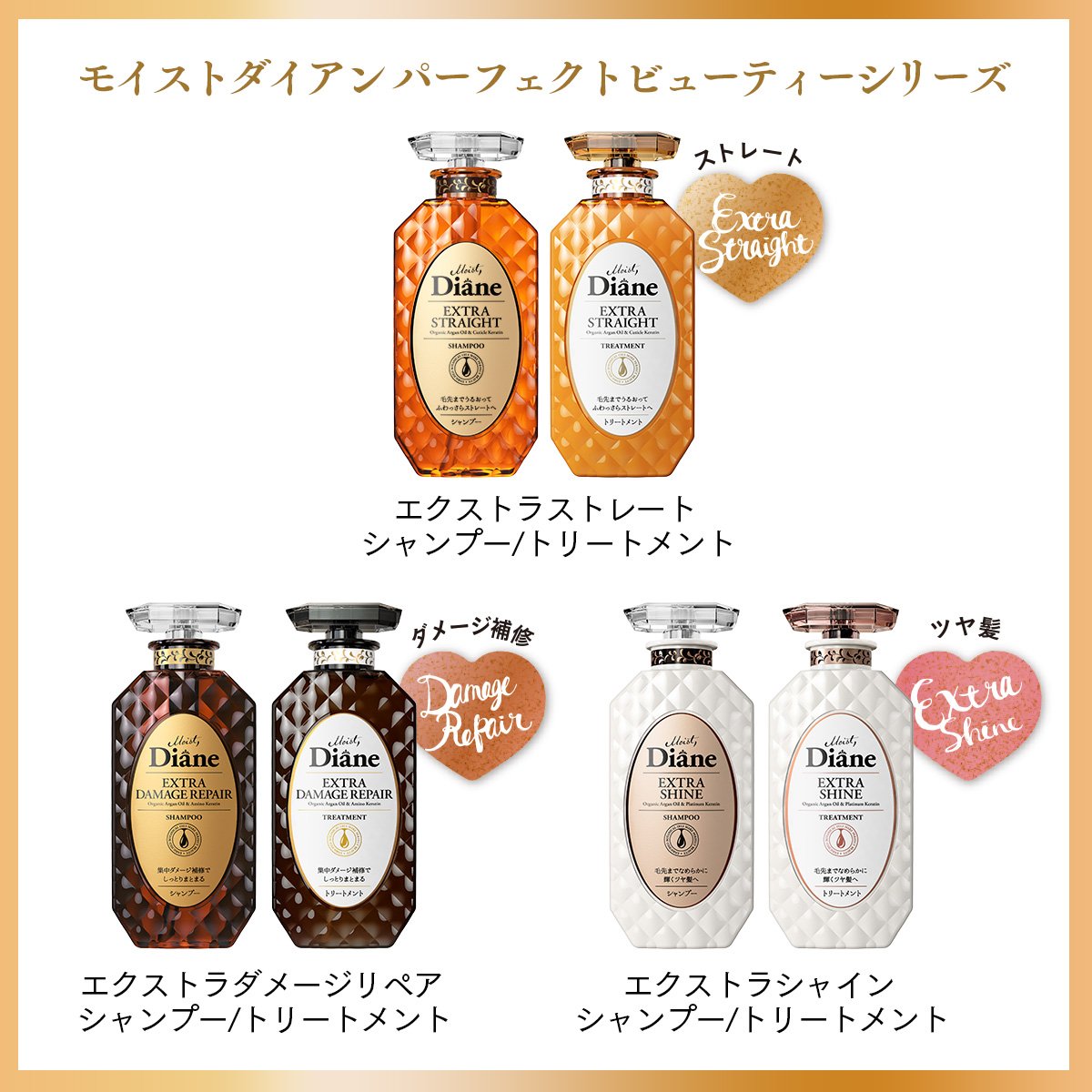 ● Extra Shine is a series focused on moisture of hair ● Organic Argan Oil (* 1), Organic Supporte Oil (* 3), Organic Muller Oil (* 4), Organic Coconut Oil (* 5), Organic Cupuasu