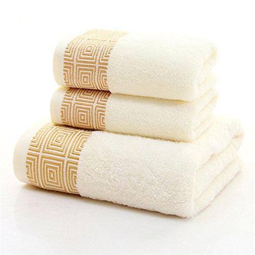 XINTINGHZP 3 Piece Towel Set; 1 Bath Towel, 2 Hand Towels Bamboo Fiber Crafted Bathroom Set(rice white)