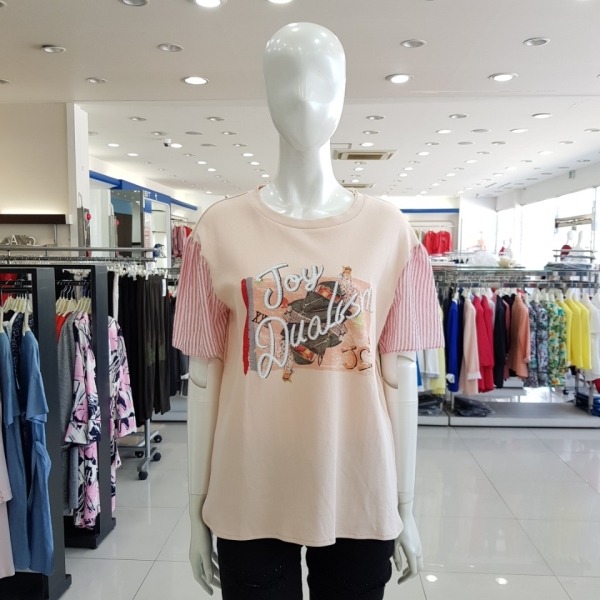 소매 스트라이프 포인트 티셔츠-JA7U6-WKS530-230