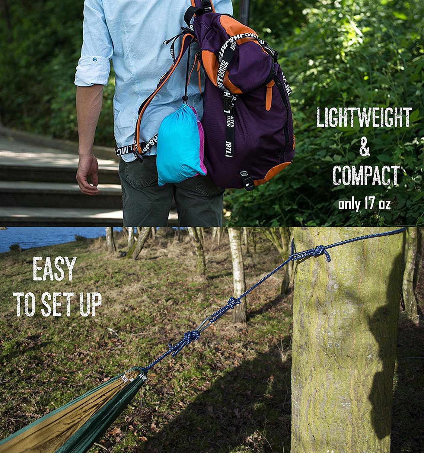 Steel carabiner: Two solid steel carabiners further strengthen the hammock.