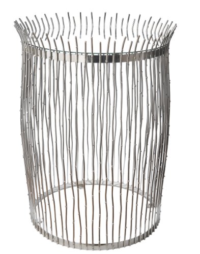 - Squiggled polished metal spokes in a nickel finish and measures 24"H x 18"D