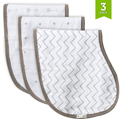Muslin Burp Cloths, Burp Bib Set (3 Pack) Grey Chevron, Arrows, Crosses by Ziggy Baby