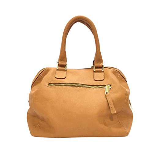 -. Feature : Satchel-style handbag has a contemporary, understated design / Masterfully crafted from 100% Colombian cow leather / Elegant, slightly slouchy design is an ideal complement for casual attire / Top zipper closure, 1 external zippered pocket, 1 interior zippered pocket, and 2 interior open pockets for tidy item storage / Double handles for comfortable hand carrying