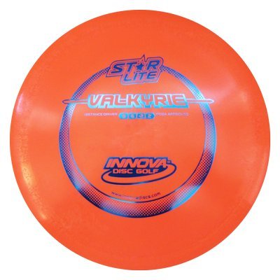 Studio : Innova Publisher : Innova Binding : Misc. Product Description The Valkyrie is a former World Record holder at 820'. In lighter weights gives new players extra distance. Lighter weights also give players extreme range when thrown downwind, while maximum weights can give excellent upwind distance. The Valkyrie's high speed turn and flight characteristics make it great choice for long range turnover shots and rollers. New Starlite technology incorporates thousands of microbubbles into our durable Star plastic. This results in high speed, premium plastic drivers in weights all the way down to 130 grams! Colors may vary. Please contact us by email for more specific weight or color requests. 0