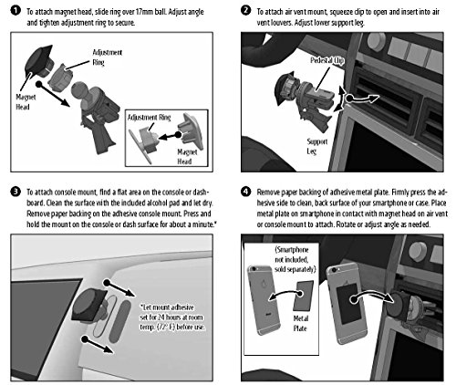 Arkon Air Vent and Adhesive Magnetic Mount Bundle for iPhone 7 6S Plus iPhone 7 6S Galaxy Note 5 Retail Black