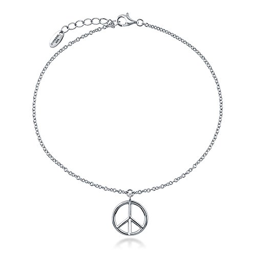 -. Title : BERRICLE Sterling Silver Peace Sign Fashion Charm Anklet 9" + 1" Extender