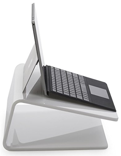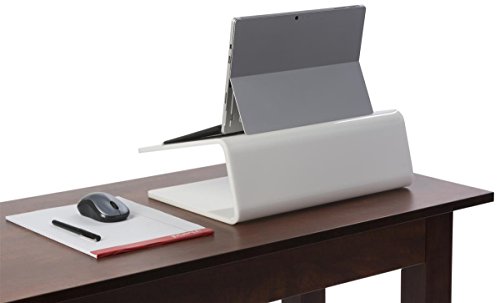 -. Title : Displays2go Modern Laptop Stand, Slanted, Double Bend Design, Acrylic – White (MDLCT2W)