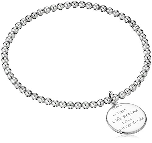 -. Binding : Jewelry -. Brand : Amazon Collection -. Color : Silver -. Department : womens -. Feature : Diamonds less than 17 facets / Imported / All our diamond suppliers confirm that they comply with the Kimberley Process to ensure that their diamonds are conflict free -. Label : Amazon Collection -. Manufacturer : Amazon Collection -. Model : 2312280017W -. MPN : 2312280017W -. PackageQuantity : 1 -. PartNumber : 2312280017W -. ProductGroup : Jewelry -. ProductTypeName : FINENECKLACEBRACELETANKLET -. Publisher : Amazon Collection -. Studio : Amazon Collection -. Title : Sterling Silver Diamond Accent "Where Life Begins, Love Never Ends" Tree of Life Stretch Bead Charm Bracelet