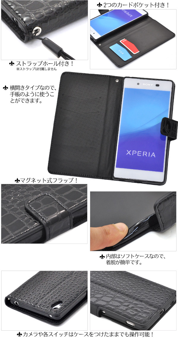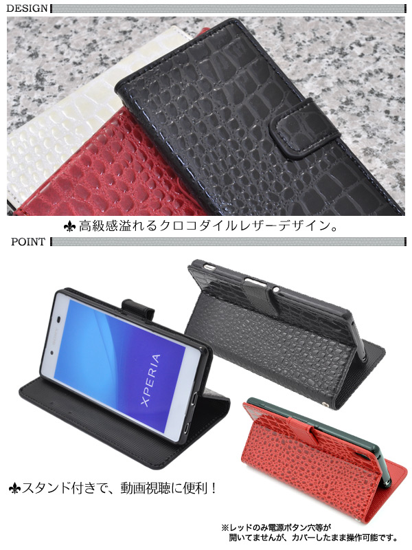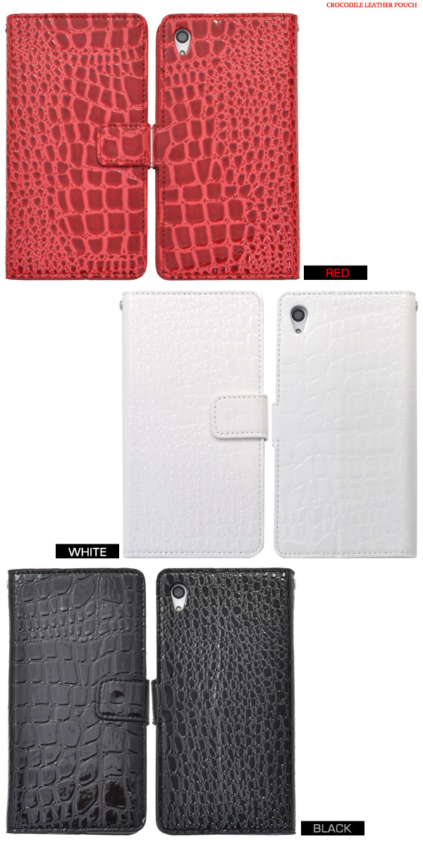 高級感溢れるクロコダイルレザーデザインのXperia Z4用スタンドケースポーチ。