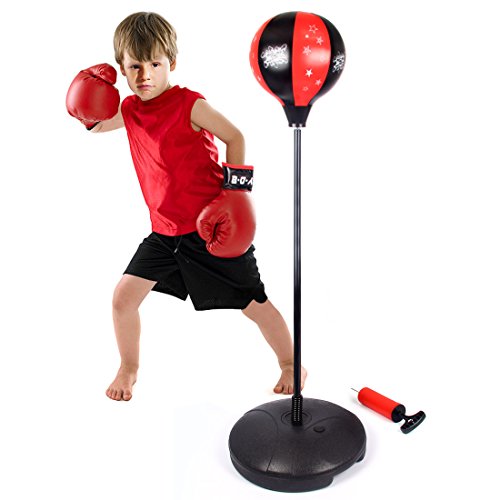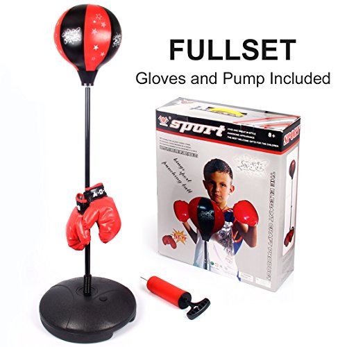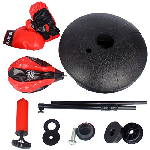 Studio : hongxiang Publisher : hongxiang Binding : Misc. Product Description This is our brand new and high quality kids boxing set, which is a perfect gift or toy for your children to exercise themselves. The toy boxing set is that easy assembly and easy storage. In a vibrant black and red color scheme, Protective outer layer of faux leather for durability hard use. Fill base with sand or water. Speed punching ball set includes a free standing punching ball, one pair of boxing gloves, a ball pump and needle. The punching ball features an adjustable height with a tailor-made faux leather ball. Adjustable padded boxing gloves.