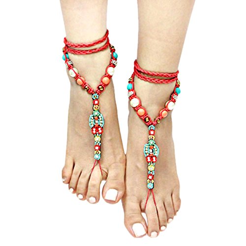 -. Feature : Bohemian Hippie beaded Barefoot Sandals Anklets / AZANBF103-RMU / Color : Clear, Gold, Turquoise, Red 1-Pair T-Strap Boho Bead Accented Anklet / Anklet : Size : 3" H, 26"+2" L / 1-Pair Can be worn barefoot or with heels/flip flops / Material : Lead compliant