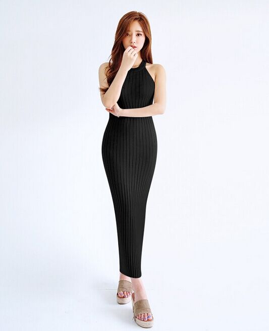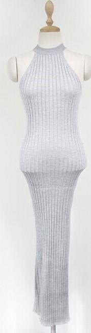 ホルターネック ニット スリット エレガント スタイリッシュ マタニティ スリム ドレス