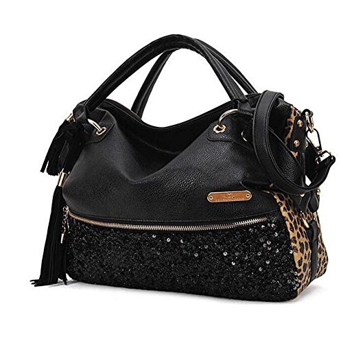 -. Brand : Detroital -. Department : womens -. Feature : Material: PU + Nylon / Style: women's fashion handbag/shoulder bag/cross-body bag / Roomy and easy for carry,very convenient for daily life. / This bag has a fabulous shine that the display picture cannot show. The sequins, tassels zippers and leopard P.R.Int make it so much more darling. / The sparkly front of the handbag contains a zipper compartment, it's an easy access point for your most used items. -. ProductGroup : Shoes -. ProductTypeName : HANDBAG -. Title : Detroital Fashion Sexy Leopard Shoulder Bags Hobo Style Sequin Handbag Crossbody Large Capacity Purse