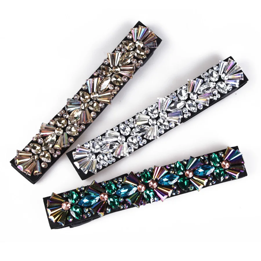 material:Polyester, PU, metal,crystal, Rhinestones,Elastic band