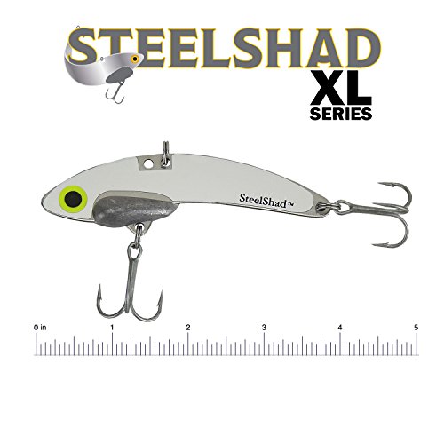-. Feature : The SteelShad XL fishing lure catches many large game fish including bass, pike, musky, walleye, lake trout, salmon, stripers, redfish, snook and tarpon / The XL Lure comes in silver color and features razor sharp, coated, stainless steel hooks for fresh and salt water. / The New XL Lure is nearly 4 inches long and weighs 3/4 ounce and makes a large target for larger gamefish. / Tremendous throbbing action of Steelshad triggers strikes from many types of game fish / SteelShad is great for beginning and experienced Anglers - Great gift for Father, Mother, Daughter or Son - Every Angler should have one!