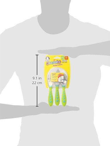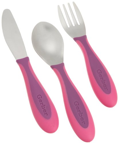 -. Binding : Baby Product -. Brand : NUK -. Feature : Longer handles bring toddlers one step closer to big-kid utensils / Easy to grip and master perfect feeding skills / Stainless steel tips / BPA free / Colors may vary, you may receive in one of the following colors: blue, pink or yellow -. Label : NUK -. Manufacturer : NUK -. ProductGroup : Baby Product -. ProductTypeName : BABY_PRODUCT -. Publisher : NUK -. Studio : NUK -. Title : Gerber Graduates BPA Free 3 Pack Graduates Kiddy Cutlery Set