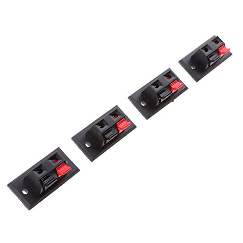 Description: - -This is for 4 pieces of 2 terminal audio speaker jacks. - -Spring Load Design, Push Type, 2-Way Stereo Speaker Plate Push Release Connector Terminal. - -Color coded red and black spring loaded terminals for easy wire insertion. Mounting screws not included. - -Size: Approx. 44*20*23mm/ 1.73x 0.78x 0.91 inch - -An excellent replacement part! Package Includes: 4 pieces 2-pin Terminal Speaker Connector Plate 0 |