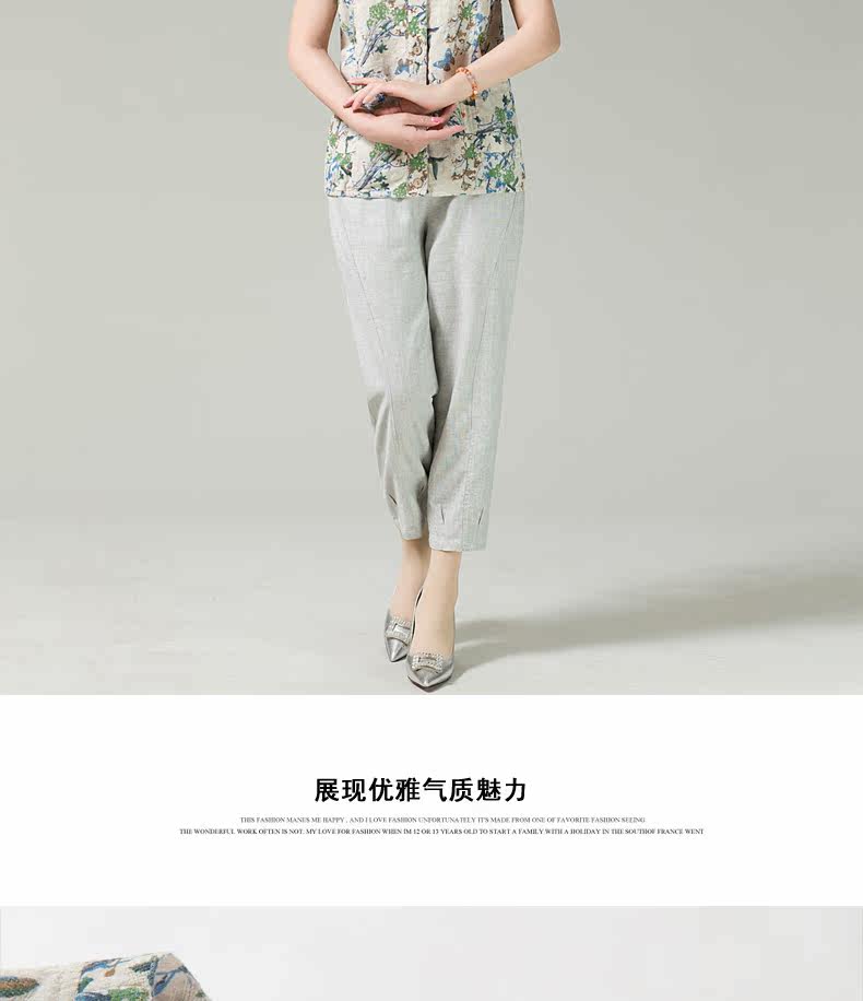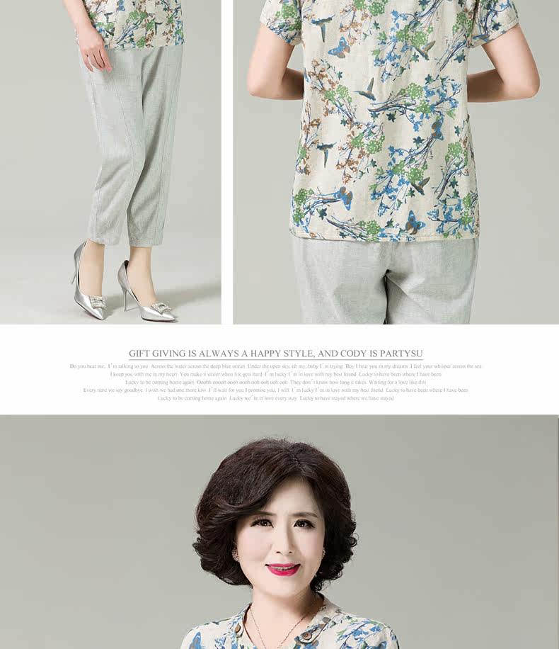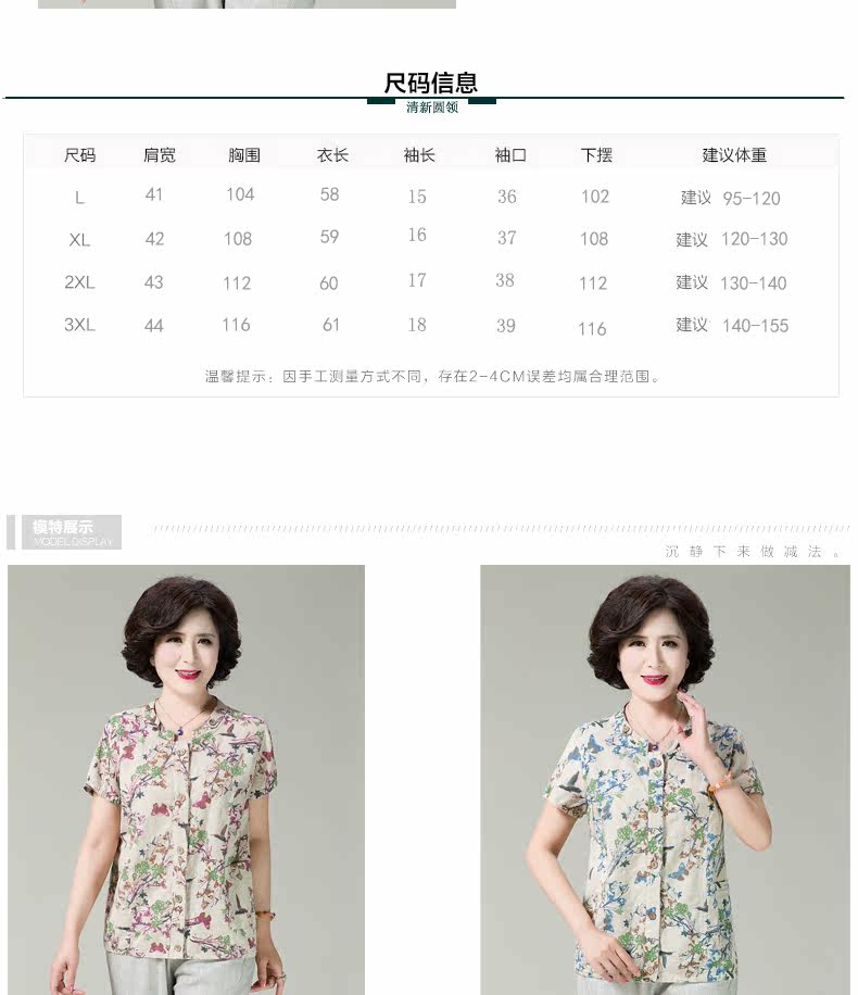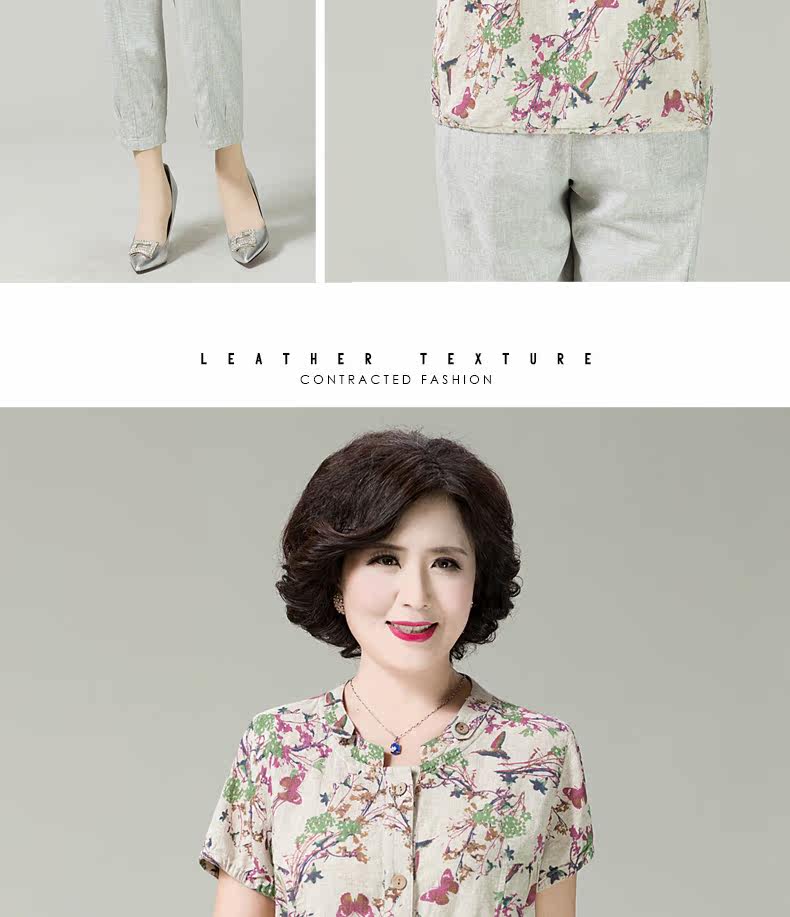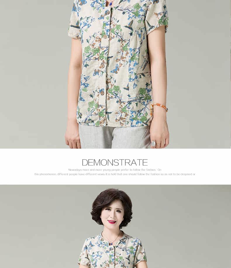 中老年女装夏装新款棉麻短袖T恤女宽松中年妈妈居家开衫短袖衬衫