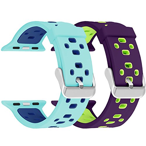 -. Title : Bands for Apple Watch, SKYLET 2 Pack 38mm/42mm Silicone Breathable Replacement Wristband for Apple Watch Series 2 Series 1 Series 3 Edition + (Smart Watch Not Included)