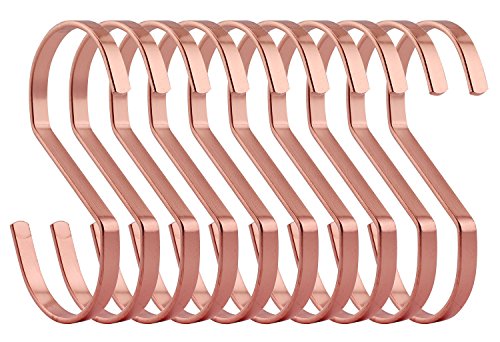 RuiLing 10-Pack 4 Inch Rose Gold Chrome Finish Steel Hanging Flat Hooks - S Shaped Hook Heavy-Duty S Hooks, for Kitchenware, Pots, Utensils, Plants, Towels, Gardening Tools, Clothes.