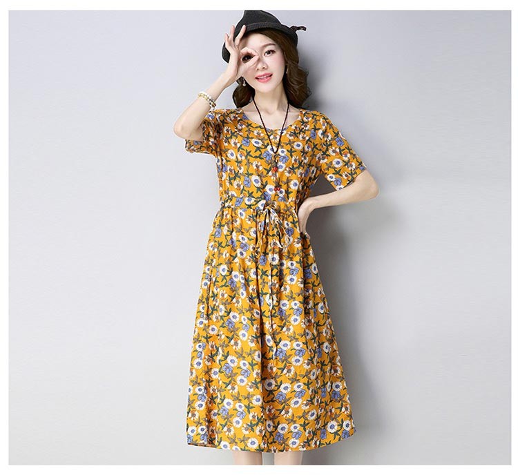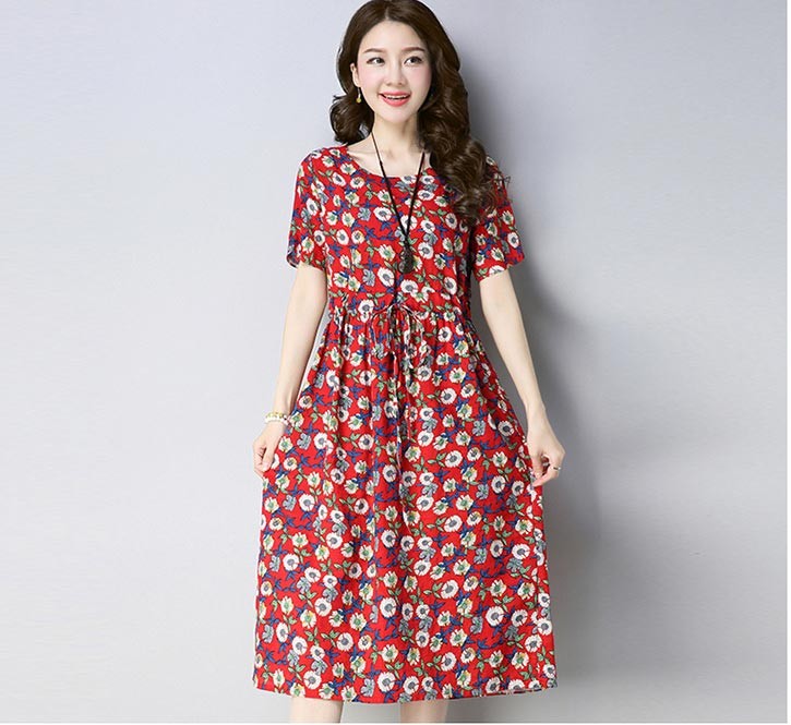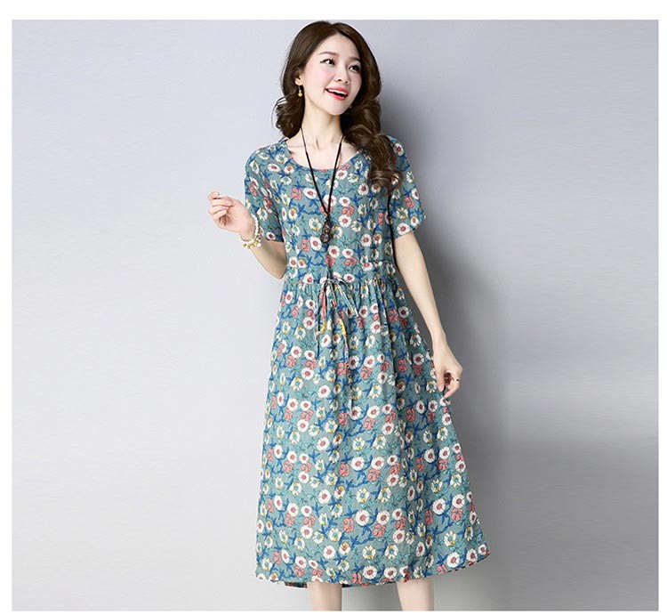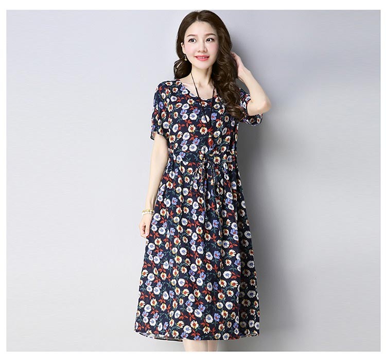 清楚でクラシカルなフラワープリントのラウンドネック・半袖ワンピース♪