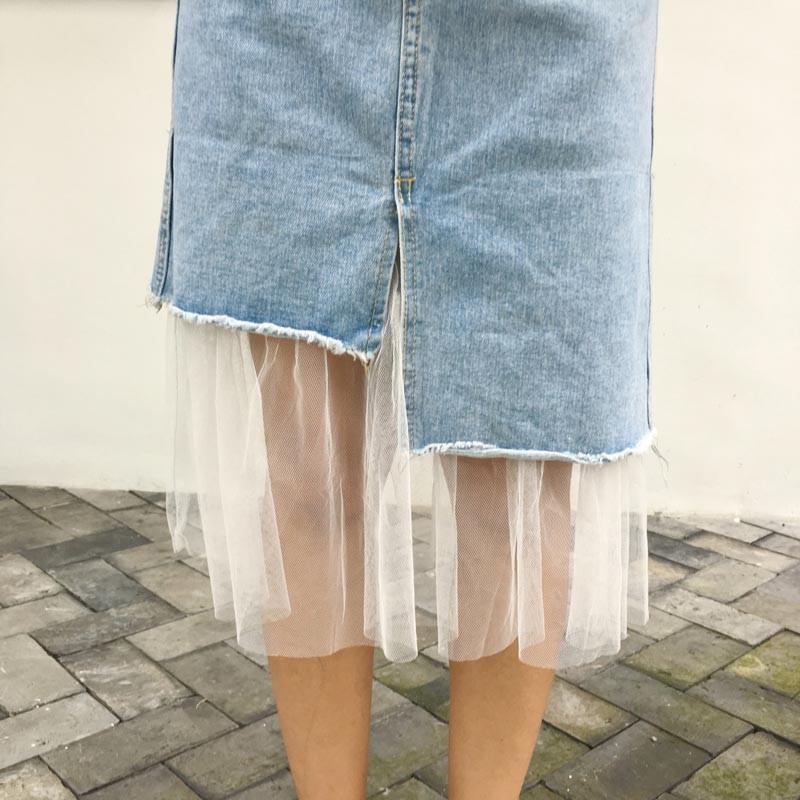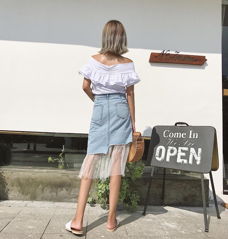 アシンメトリーなデニムスカートの裾にホワイトメッシュをアレンジしたスカート♪