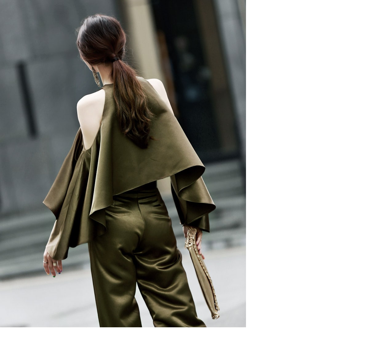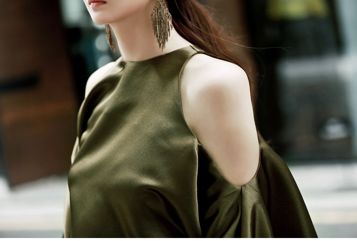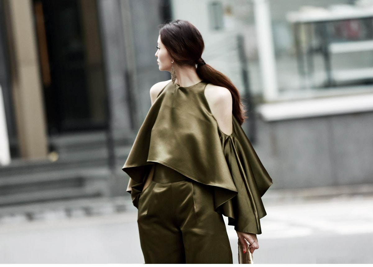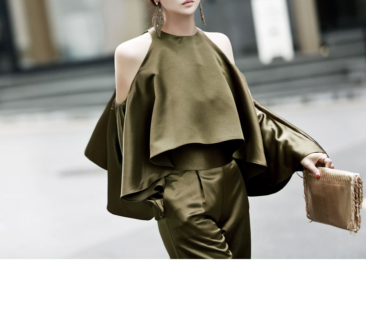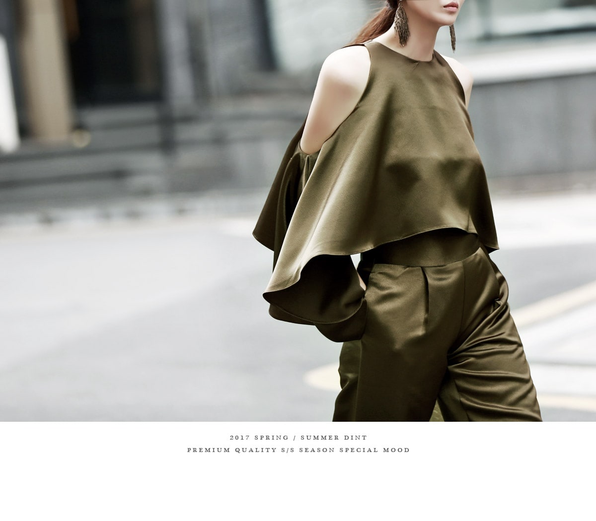 B1992 클로티 오프숄더 훌 블라우스 KhakiP1684 클로티 샤틴 와이드 슬랙스 KhakiAJ-3438 이어링 Gold HAR-501 럭셔리 엠보 스트랩 뮬*HAND MADE* Gold