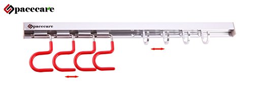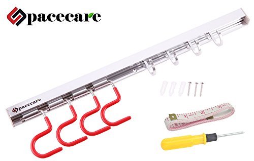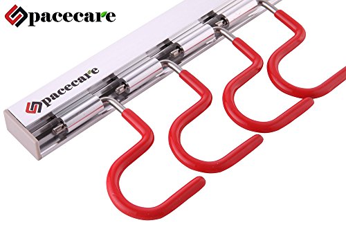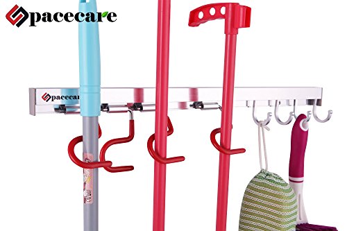 SPACECARE Mop and Broom Holder,wall Organizer Tool Storage & Organization for Home, Closet, Wall Broom Garage Rack,multi Function Mops, Brooms, or Sports Holder 4 Positions Hooks SPBH002