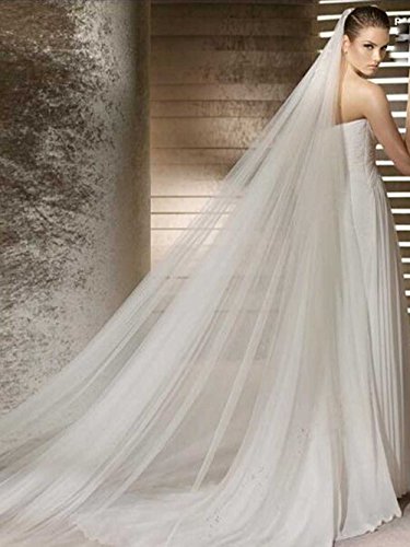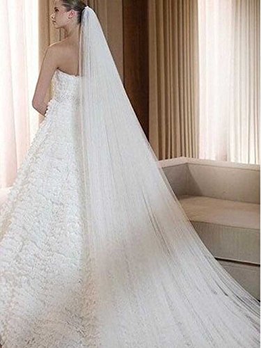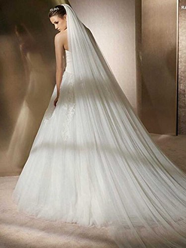 Venusvi Lace Edge Cathedral Length Wedding Bridal Veil+Comb (Ivory)