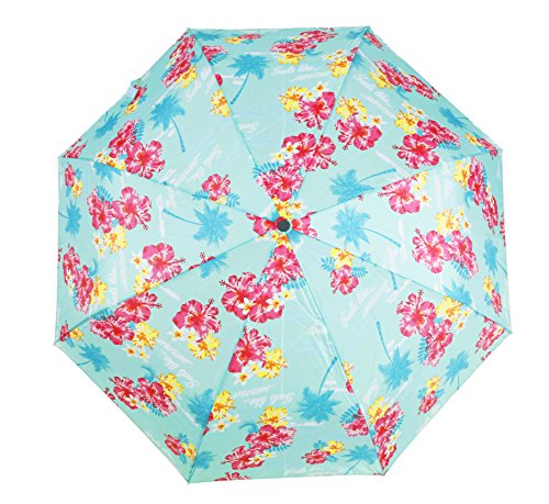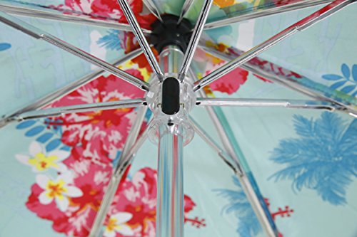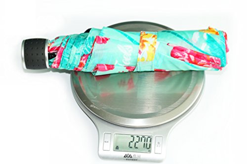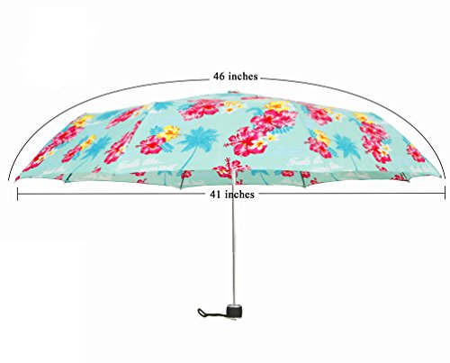 -. Feature : MATERIAL: 190T Polyester; Aluminum alloy shaft combined with 8 aluminum alloy ribs. / CONVENIENT: Designed to be portable and convenient, manual open and close, this compact and lightweight umbrella is easy to be carried. / DESIGN: Elegant design of Special tropical flower pattern on its canopy, plus Rubber-coated Handle, it is ideal for everyday life. / SIZE and WEIGHT: Canopy arc length of 45.7" (116cm); Open diameter of 40.6" (103cm); Folding length of 9.8" (25cm). Big enough to share this umbrella with your lover to be close to each other, and keep the rain from hitting you in the face. Net weight: 0.53lb (0.25kg).